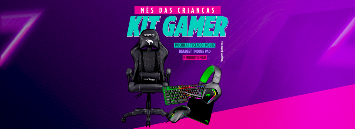 Durante todo o mês, vamos sortear Kits Gamer completíssimos com mochila, teclado, mouse, fone com headset, mouse pad e até meia gamer!